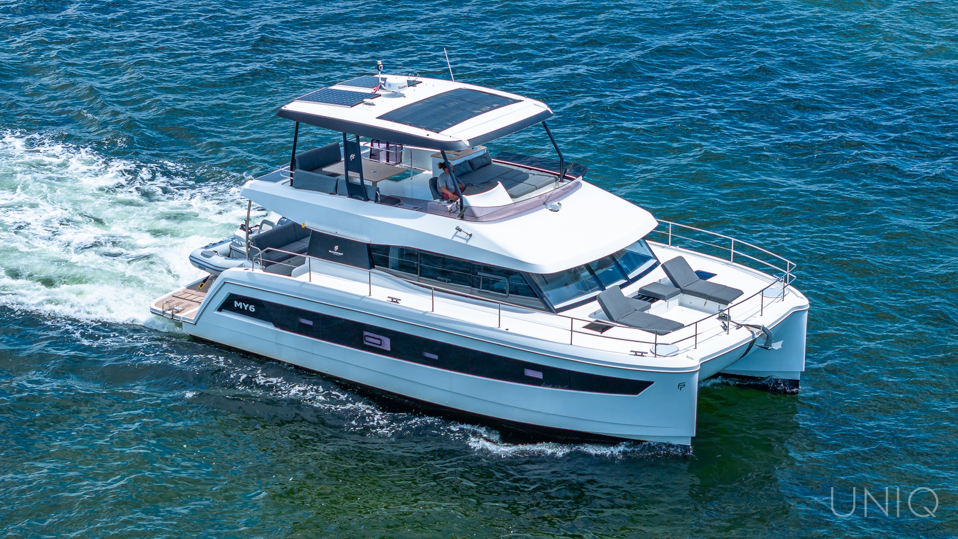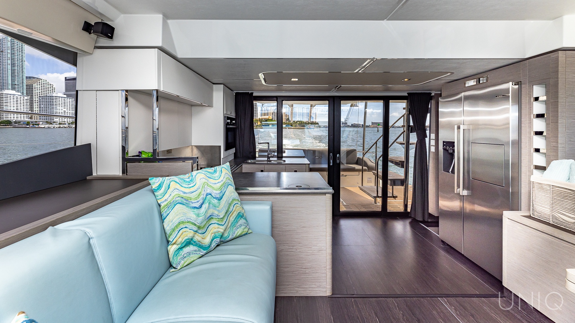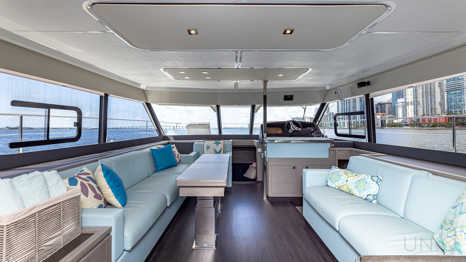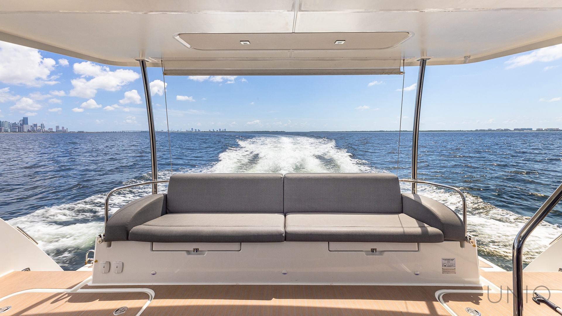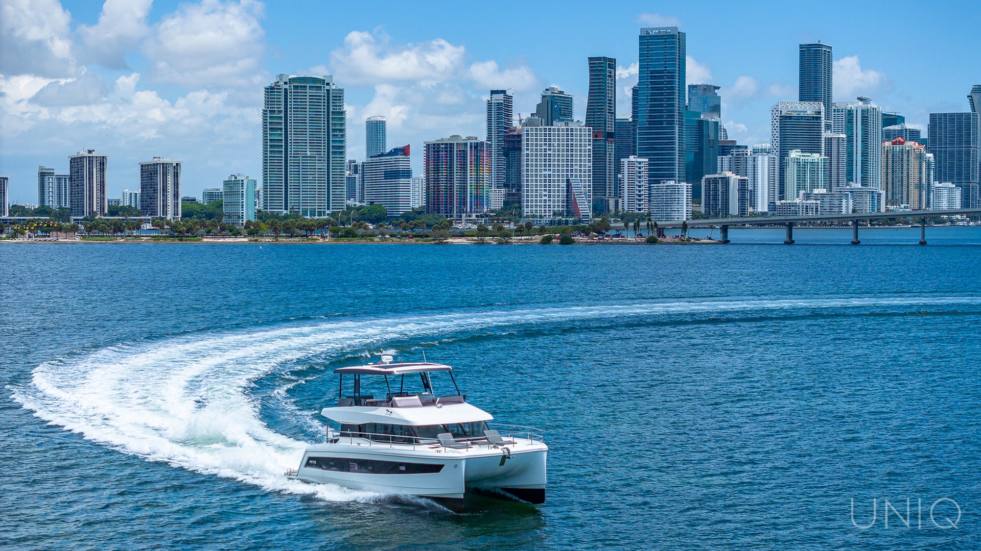 The 50’ UNIQ Fountaine Pajot is a stunning power catamaran that blends modern design, comfort, and performance — ideal for those seeking an elevated yachting experience in Miami. Docked from River Landing Marina, this spacious vessel offers an unforgettable escape through Biscayne Bay, Miami River, and the nearby islands.