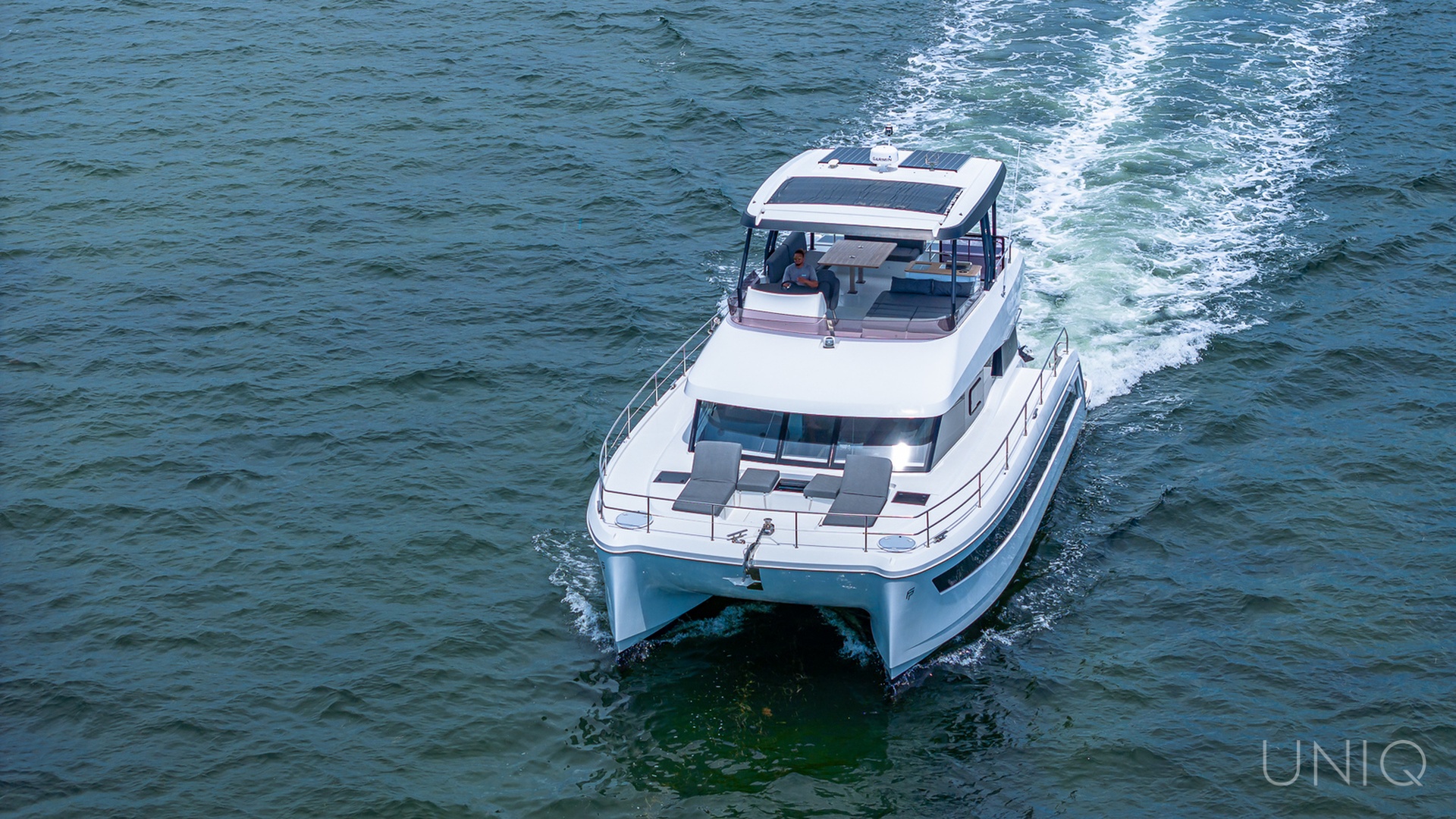 Designed for space and elegance, the 50’ UNIQ Fountaine Pajot is perfect for private charters, celebrations, and relaxing days on the water. Its dual-hull design provides exceptional stability and generous outdoor and indoor areas for socializing and entertaining.