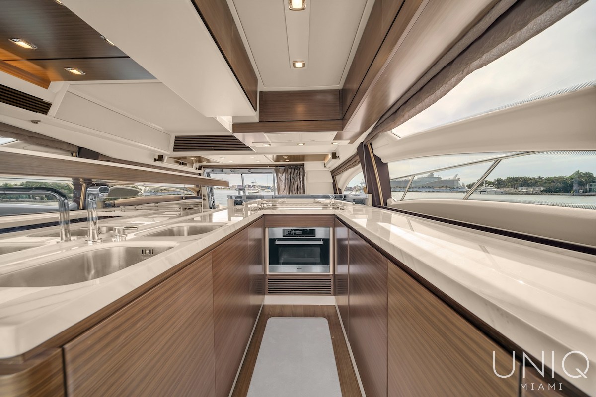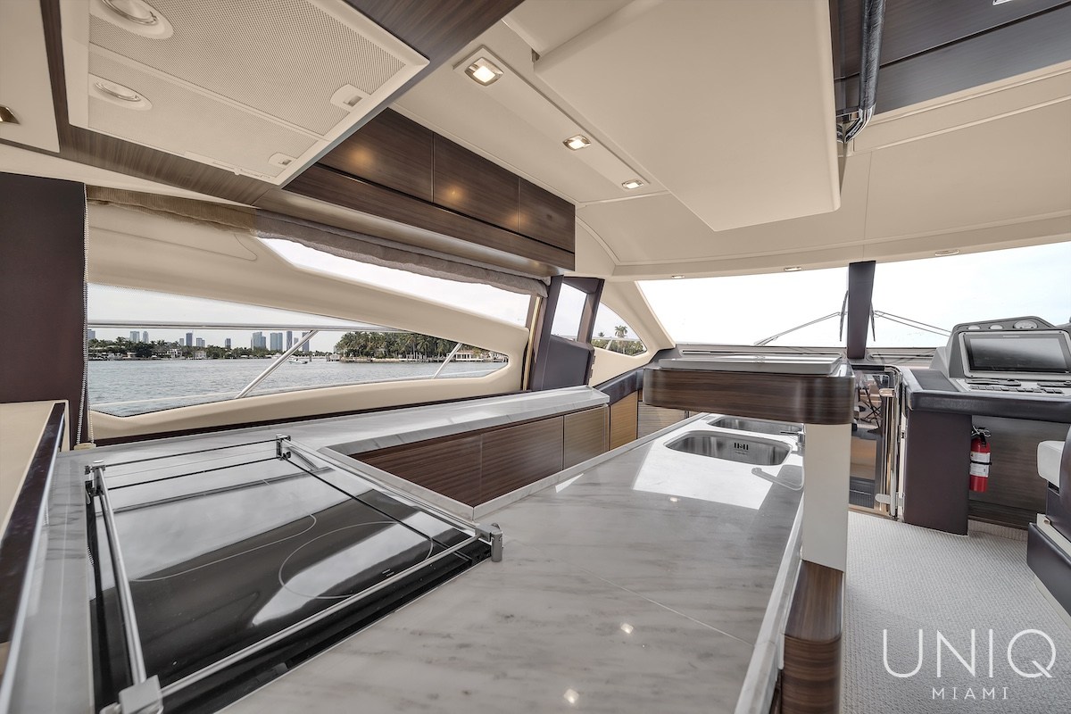 The 64’ Azimut yacht is a refined Italian-built vessel that offers an exceptional combination of space, comfort, and performance, making it a popular choice for luxury yacht rentals in Miami. Its wide beam creates an open and airy interior, featuring a stylish salon, large windows, and smooth transitions between indoor and outdoor living areas. The flybridge and aft deck provide ample room for socializing, sunbathing, and enjoying Miami’s skyline, while the yacht’s sleek profile ensures a smooth and enjoyable ride along the coast.