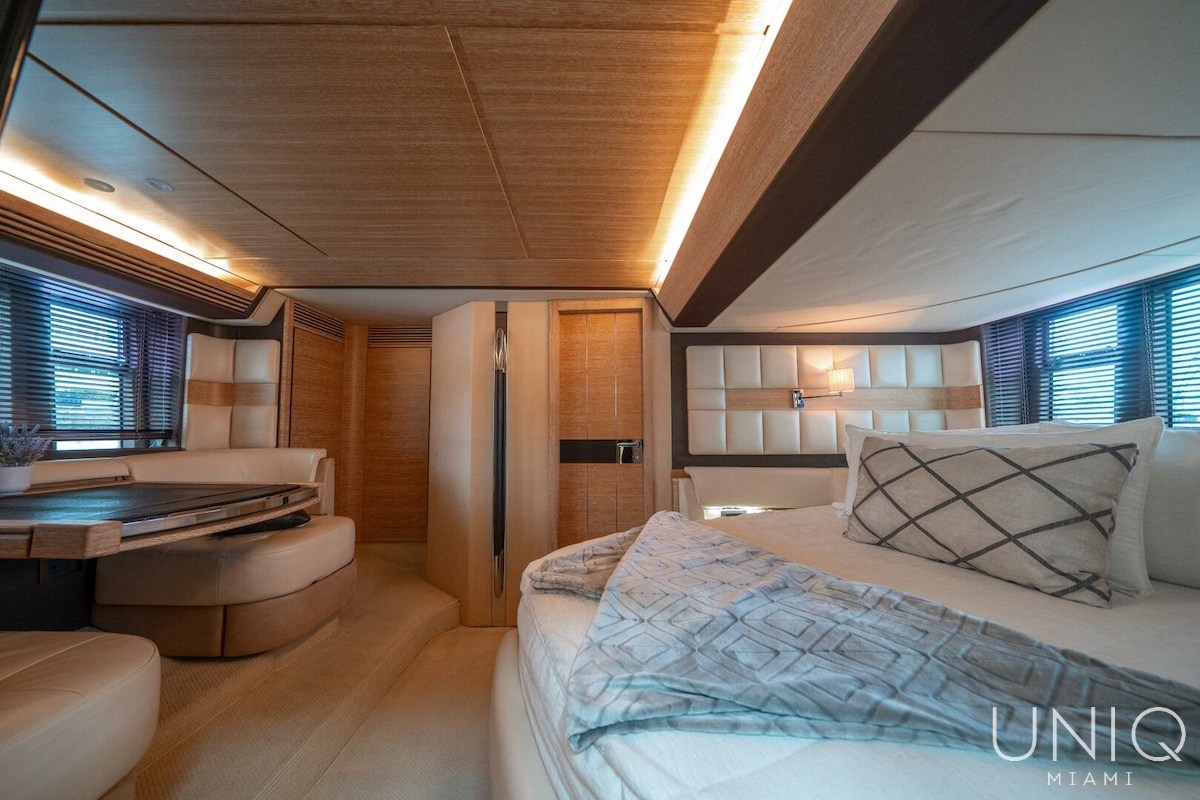 The 64’ Azimut yacht is an excellent option for those seeking luxury, space, and value in one complete package. Known for its wide beam and intelligently designed layout, this Italian-built yacht offers generous indoor and outdoor areas that feel larger than many yachts in its class. From the elegant salon to the spacious flybridge and sunbathing areas, every detail is designed for comfort and style. For guests looking for the best price for a yacht of this size in Miami, the 64’ Azimut delivers premium quality without the premium cost.