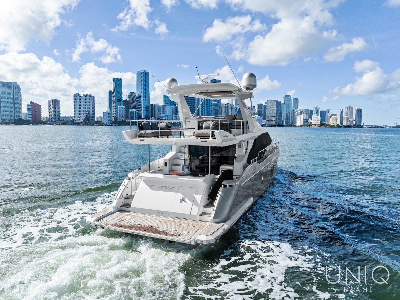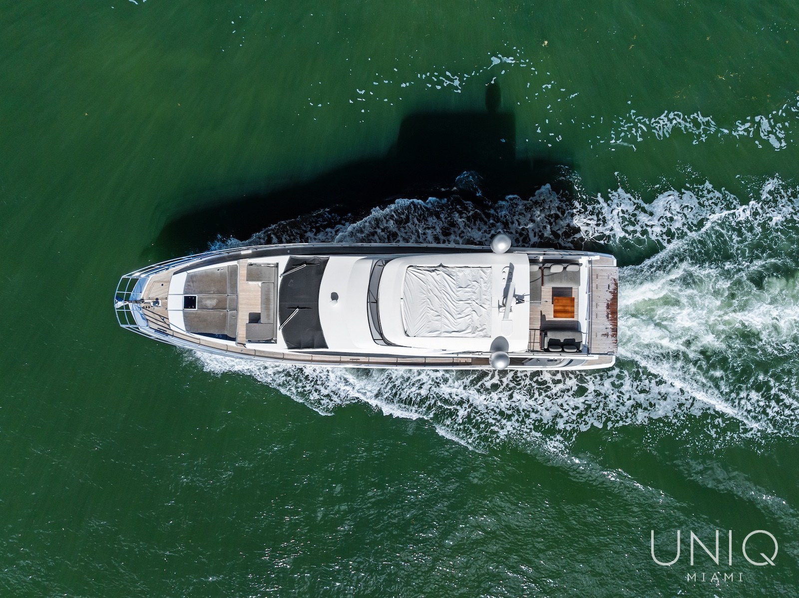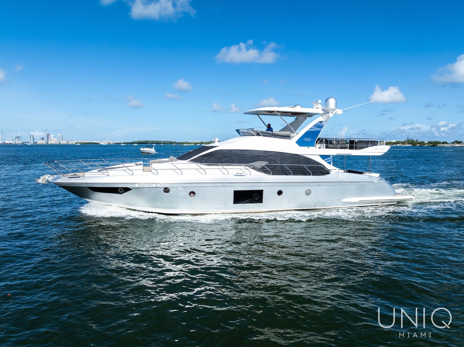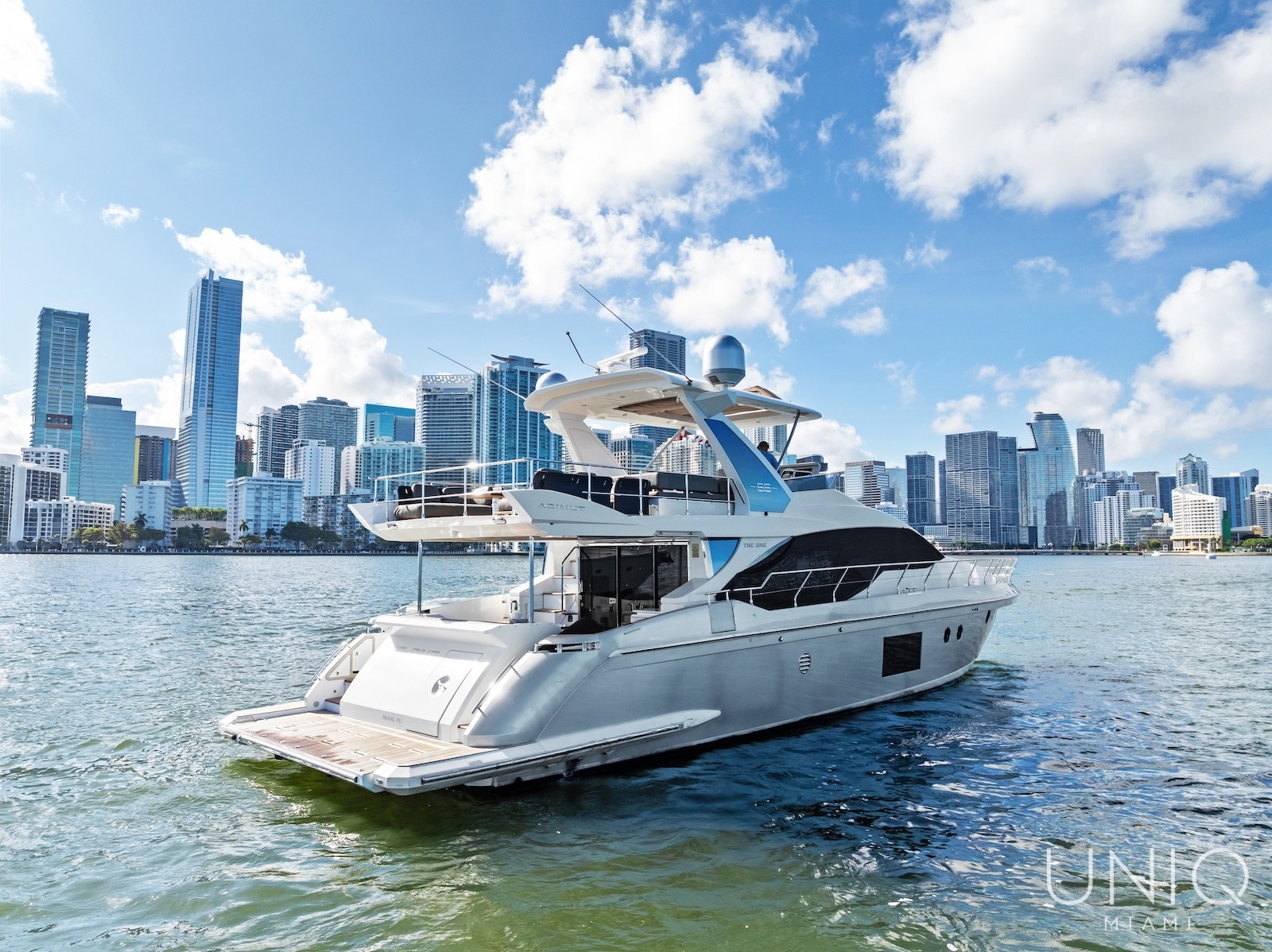 The 68' UNIQ Azimut Yacht represents the perfect combination of Italian elegance, advanced technology, and superior comfort. Measuring 68 feet in length with a 17-foot beam, this stylish yacht was designed for those who appreciate refined luxury and exceptional performance on the water. Its sleek exterior, spacious flybridge, and open-deck layout make it ideal for enjoying Miami’s sunshine, coastal views, and vibrant lifestyle. Built to impress, 68' UNIQ Azimut Yacht delivers a seamless balance of speed, comfort, and sophistication — the ultimate choice for an unforgettable Miami yacht charter experience.