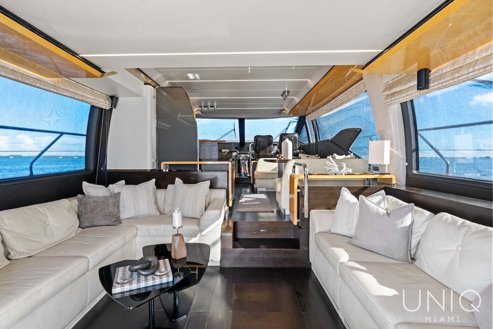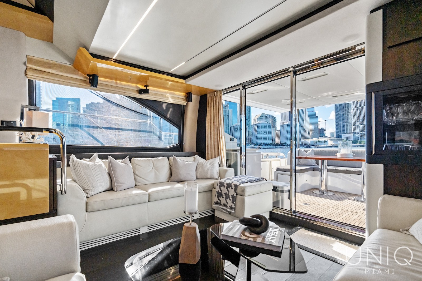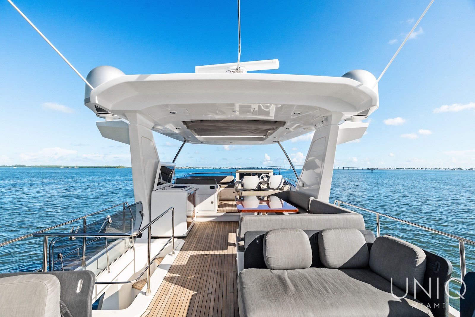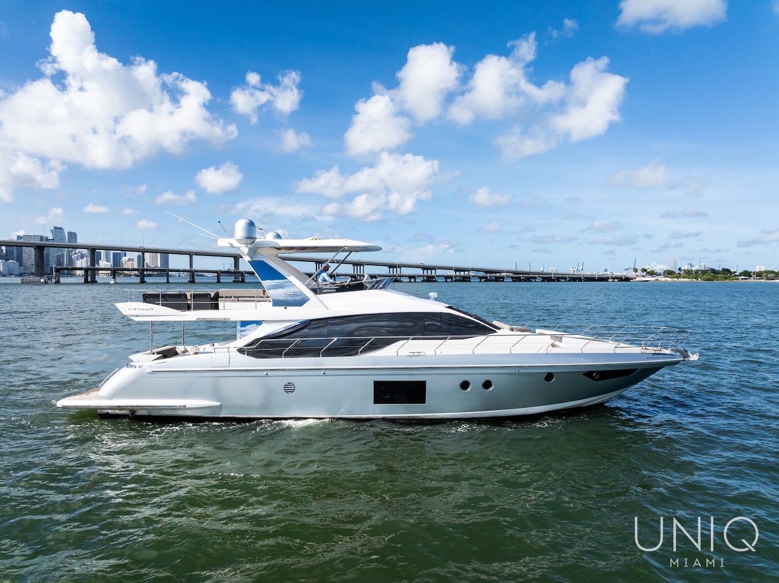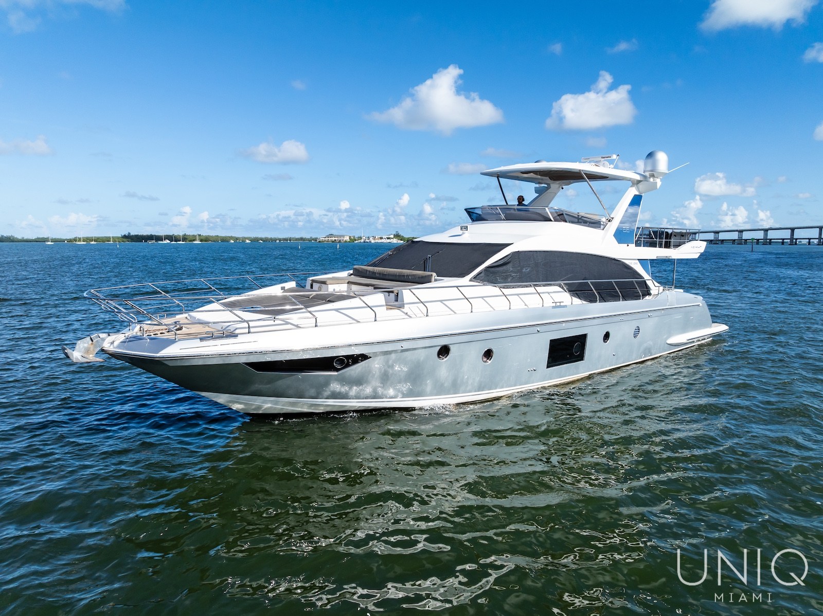 The 68' UNIQ Azimut Yacht represents the perfect combination of Italian elegance, advanced technology, and superior comfort. Measuring 68 feet in length with a 17-foot beam, this stylish yacht was designed for those who appreciate refined luxury and exceptional performance on the water. Its sleek exterior, spacious flybridge, and open-deck layout make it ideal for enjoying Miami’s sunshine, coastal views, and vibrant lifestyle. Built to impress, 68' UNIQ Azimut Yacht delivers a seamless balance of speed, comfort, and sophistication — the ultimate choice for an unforgettable Miami yacht charter experience.