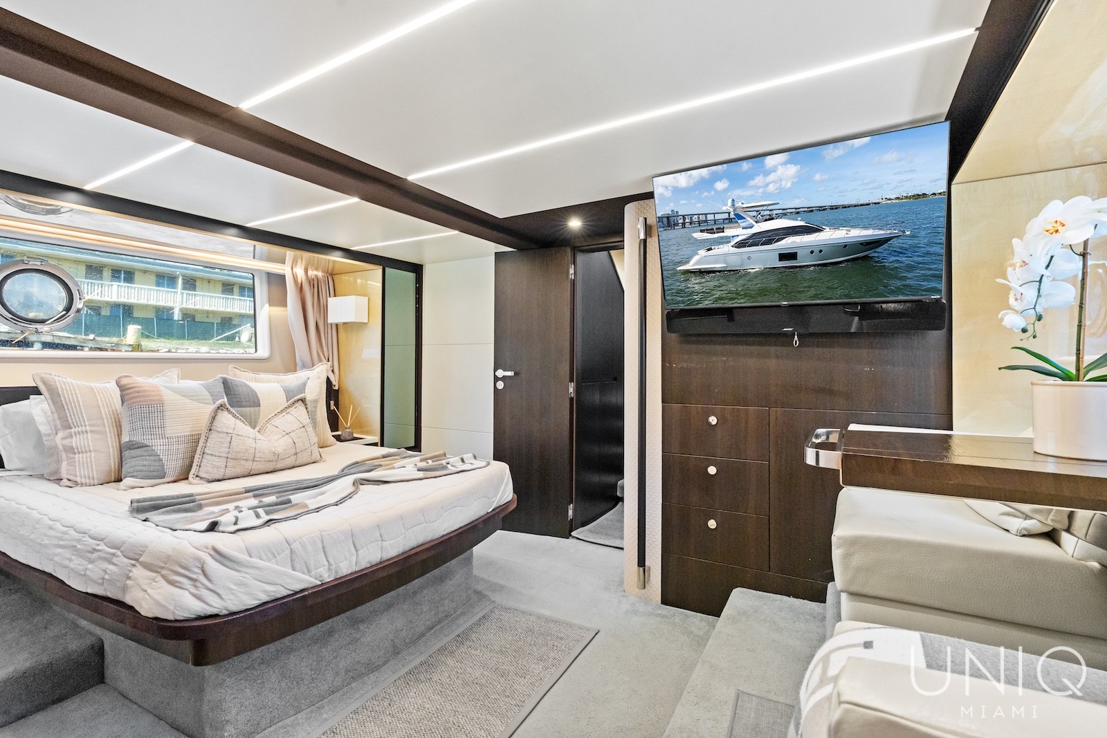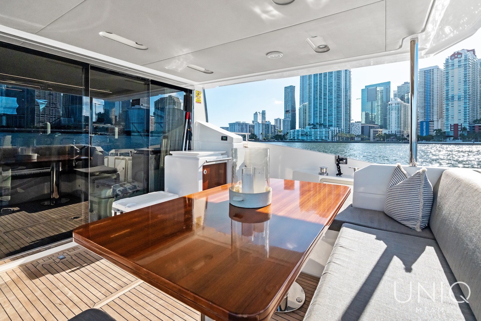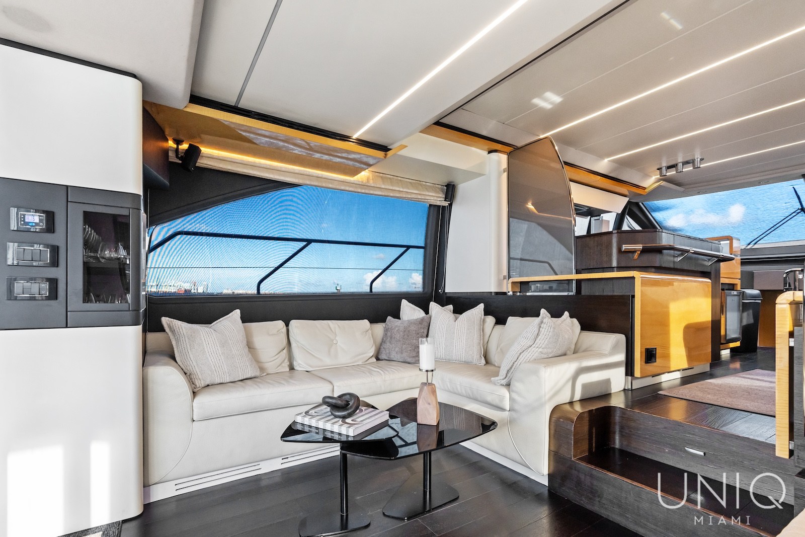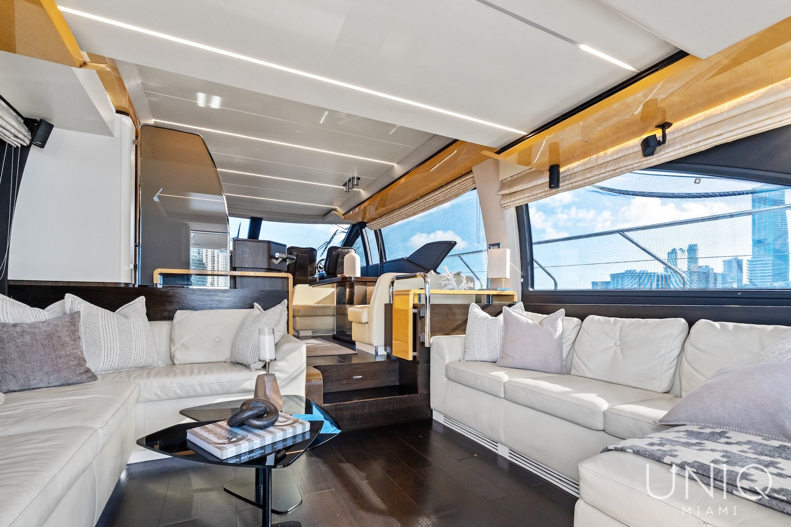 The 68' UNIQ Azimut Yacht represents the perfect combination of Italian elegance, advanced technology, and superior comfort. Measuring 68 feet in length with a 17-foot beam, this stylish yacht was designed for those who appreciate refined luxury and exceptional performance on the water. Its sleek exterior, spacious flybridge, and open-deck layout make it ideal for enjoying Miami’s sunshine, coastal views, and vibrant lifestyle. Built to impress, 68' UNIQ Azimut Yacht delivers a seamless balance of speed, comfort, and sophistication — the ultimate choice for an unforgettable Miami yacht charter experience.