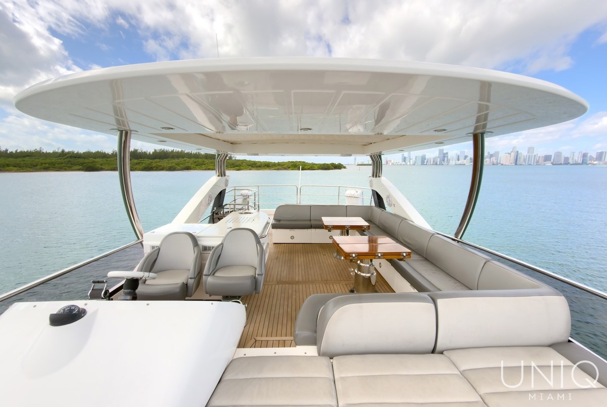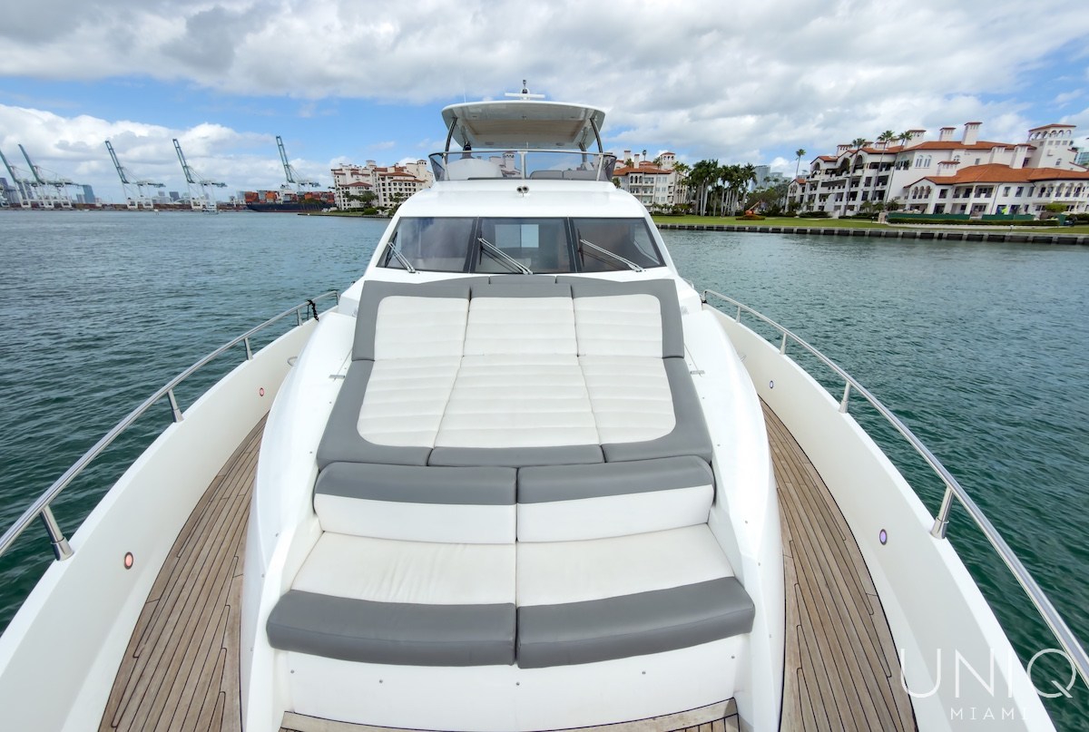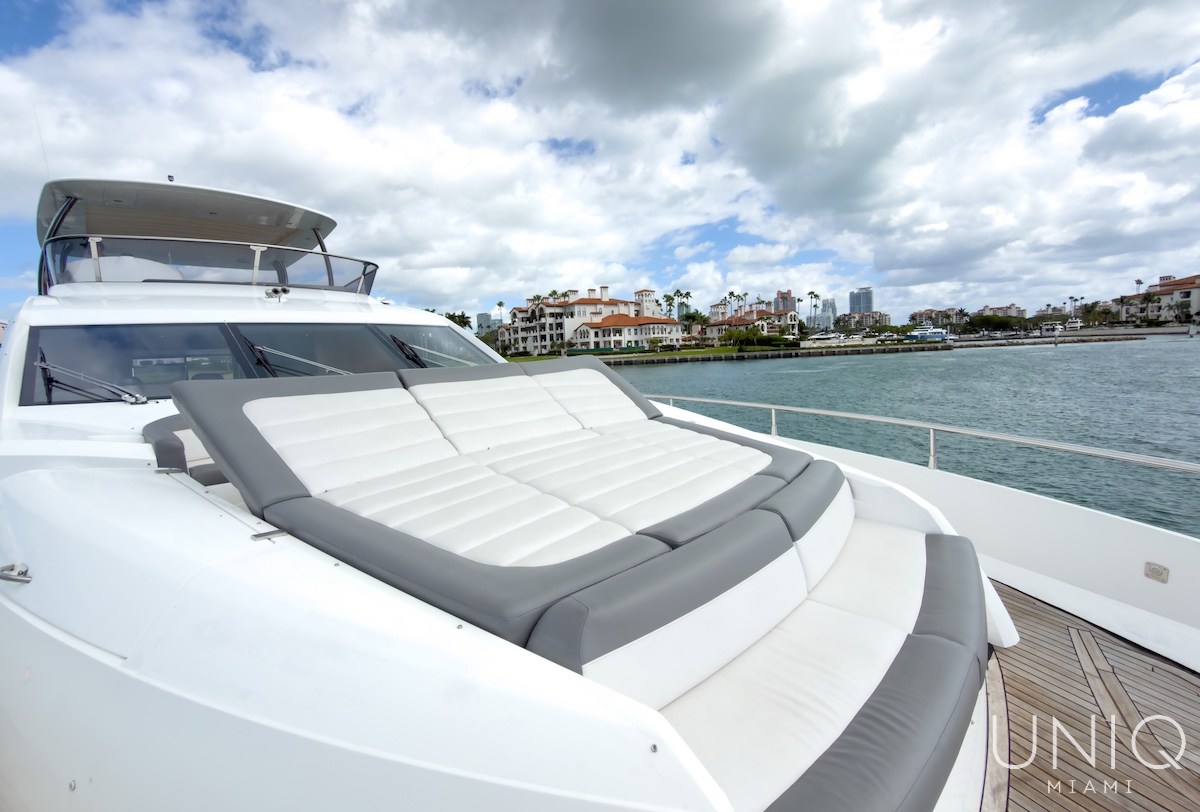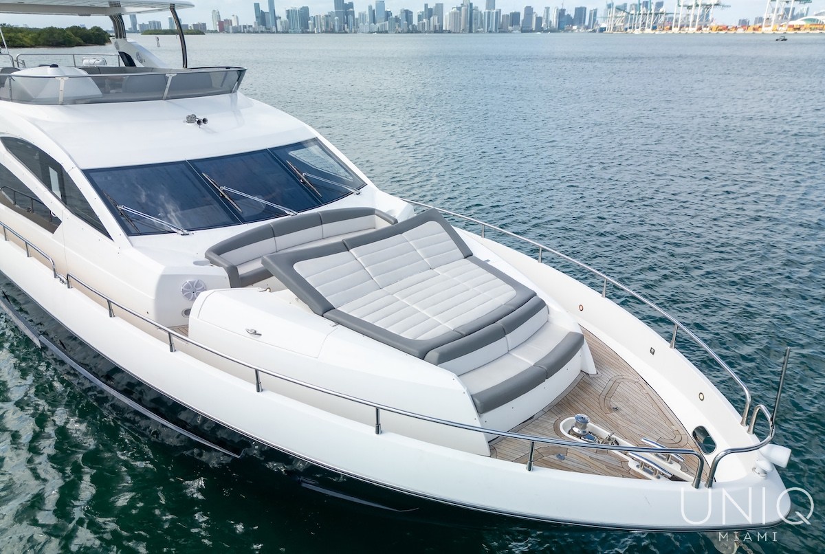 The 80’ Sunseeker yacht is an excellent choice for those seeking a refined and spacious luxury yacht charter in Miami. Known for its sleek profile and generous layout, this yacht offers expansive outdoor decks ideal for entertaining, sunbathing, and enjoying panoramic views of Miami’s skyline. Inside, the yacht features elegant interiors with comfortable lounges, well-appointed cabins, and modern amenities designed for relaxing day charters or overnight stays. The 80’ Sunseeker delivers comfort, style, and performance on the water.
