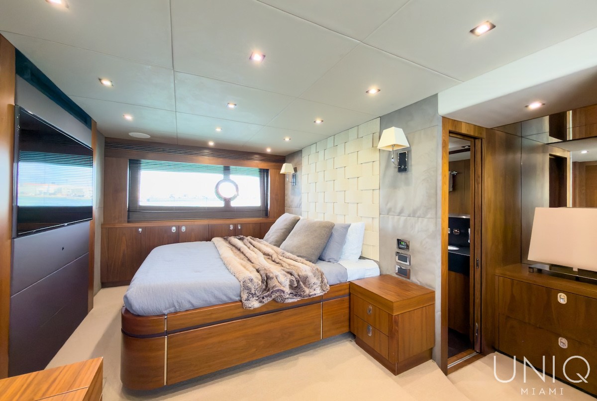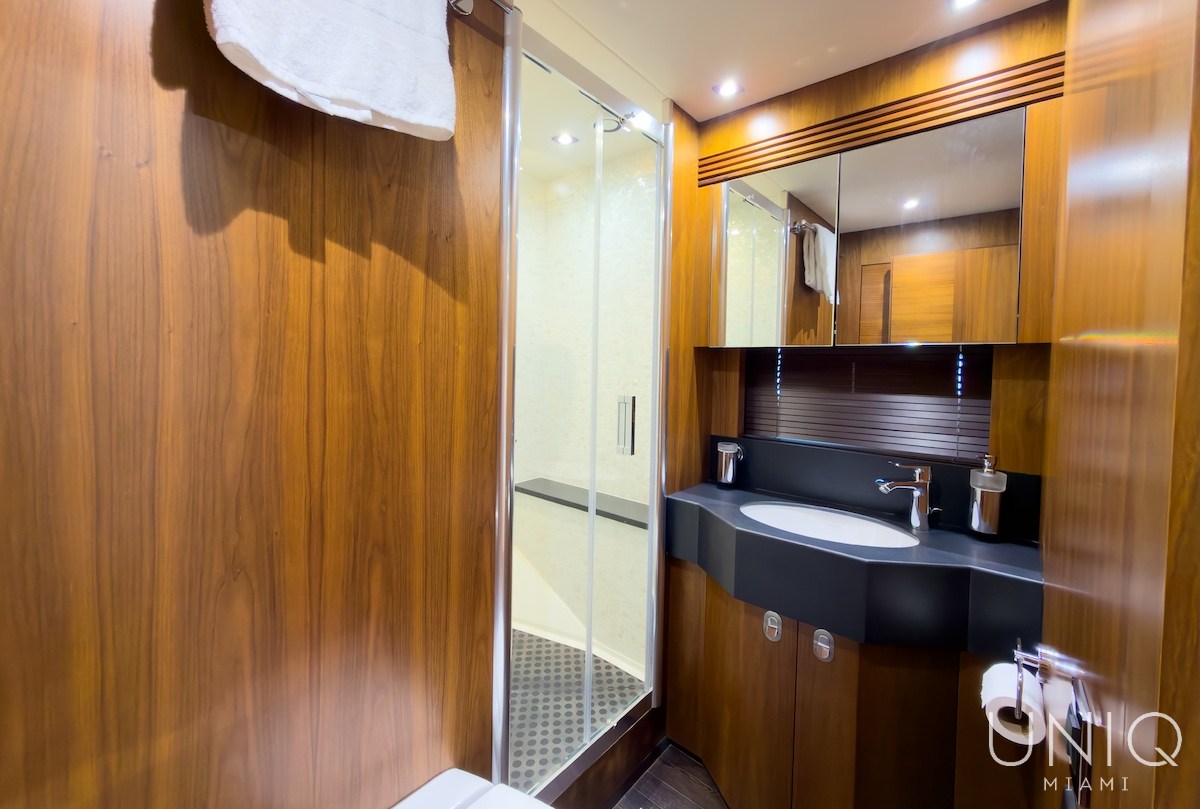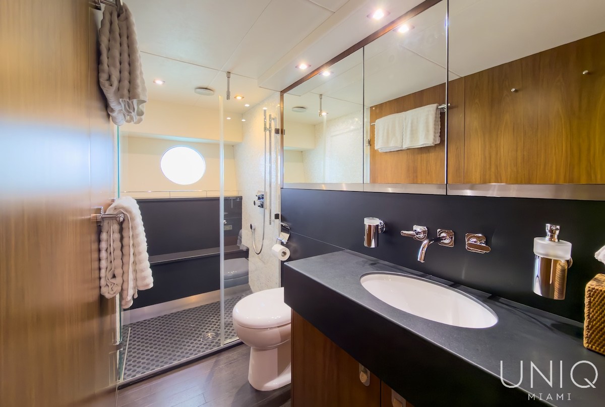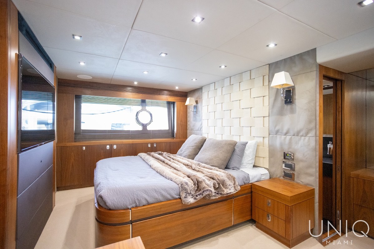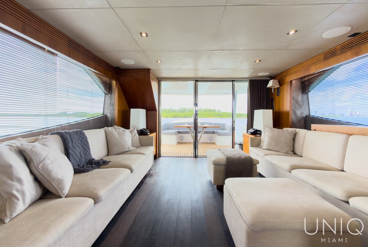 The 80’ Sunseeker yacht is an excellent choice for those seeking a refined and spacious luxury yacht charter in Miami. Known for its sleek profile and generous layout, this yacht offers expansive outdoor decks ideal for entertaining, sunbathing, and enjoying panoramic views of Miami’s skyline. Inside, the yacht features elegant interiors with comfortable lounges, well-appointed cabins, and modern amenities designed for relaxing day charters or overnight stays. The 80’ Sunseeker delivers comfort, style, and performance on the water.